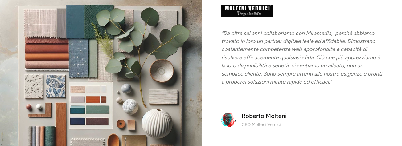 Molteni Vernici, storica azienda italiana produttrice di vernici speciali e finiture di lusso per il design d'interni, ha avviato una partnership strategica con Miramedia, perché certificati come Webflow Experts.